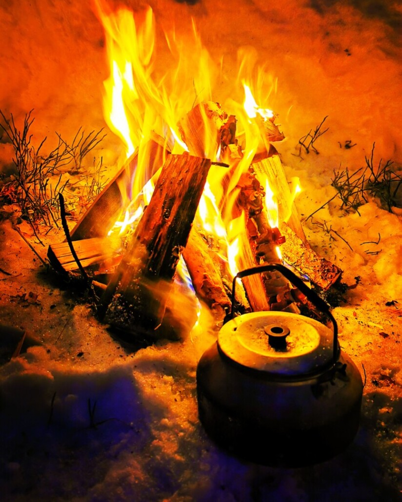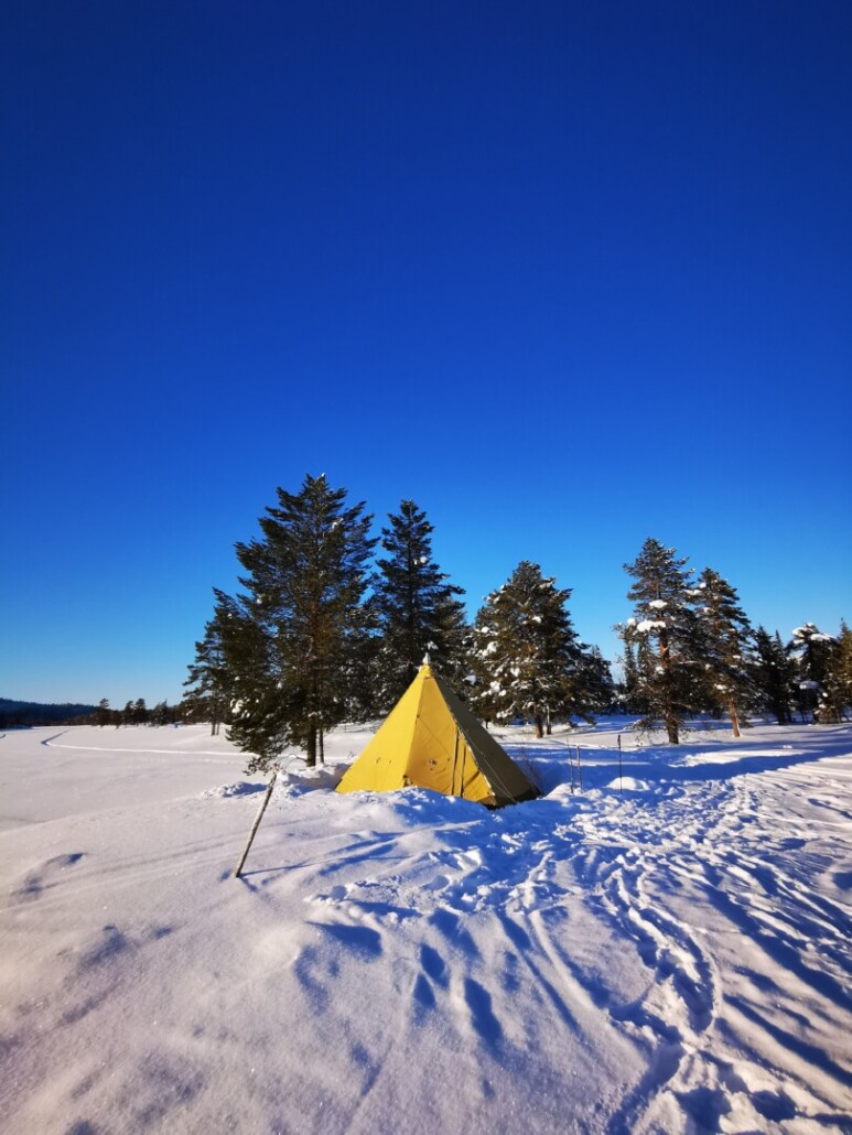 Während der Exkursionen steuern wir besondere Plätze an: stille Wälder, weite Ebenen, verschneite Seen, geschützte Feuerstellen. Dort genießen wir unsere Mahlzeiten nicht nur im Hauptcamp, sondern auch draußen – im Tipi am Ofen oder am knisternden Lagerfeuer.