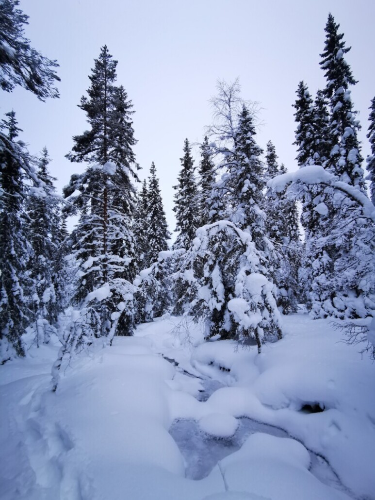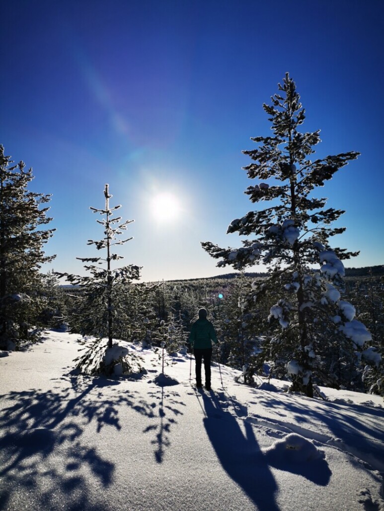 Wir bewegen uns auf unseren Touren mit Schneeschuhen durch die Landschaft Lapplands. Schneeschuhe sind im Preis inbegriffen – wer möchte, kann eigene Ausrüstung mitbringen.